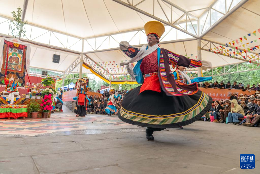 這是8月24日在拉薩宗角祿康公園拍攝的藏戲展演現(xiàn)場(chǎng)。新華社記者 旦增尼瑪曲珠 攝