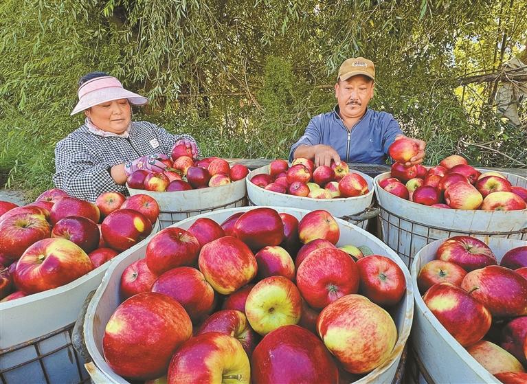 走進(jìn)位于林芝市巴宜區(qū)與米林市交界處的林芝農(nóng)墾嘎瑪農(nóng)業(yè)有限公司蘋果種植基地,連片的果樹枝繁葉茂,紅彤彤的蘋果綴滿枝頭。得益于高原充足的日照、較大的晝夜溫差,以及清冽的雪山融水灌溉,這里的蘋果色澤鮮艷,口感脆甜多汁,深受消費者青睞?!?/p>