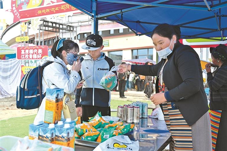 圖為在青稞美食匯展區(qū),顧客在購(gòu)買青稞產(chǎn)品。