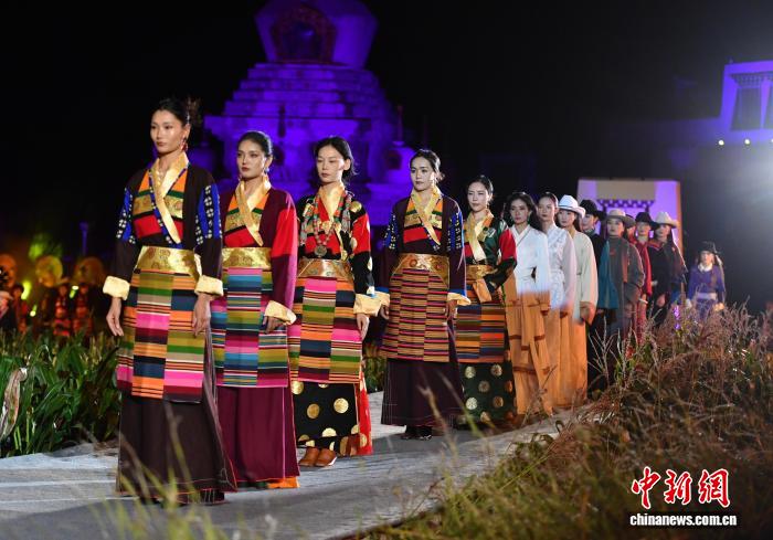 20日晚,一場田園中的走秀讓大眾再次感受到鄉(xiāng)城女性最具代表性的民族服飾“瘋裝”的文化內(nèi)涵和動(dòng)人魅力。伴隨著夜幕下的絢麗燈光,當(dāng)?shù)夭刈宕迕窈蛠碜郧嗪!⒏拭C、西藏等地的藏族模特身著盛裝,演繹一場融合傳統(tǒng)與現(xiàn)代的“民族時(shí)尚秀”。