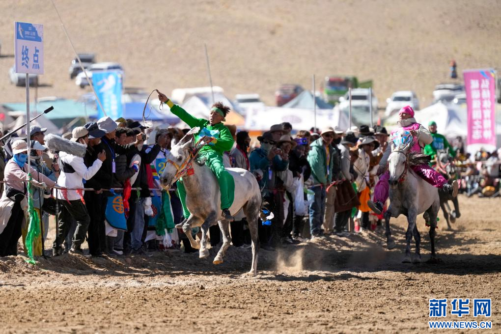 9月27日,選手在終點沖刺(無人機照片)。新華網(wǎng) 旦增努布攝