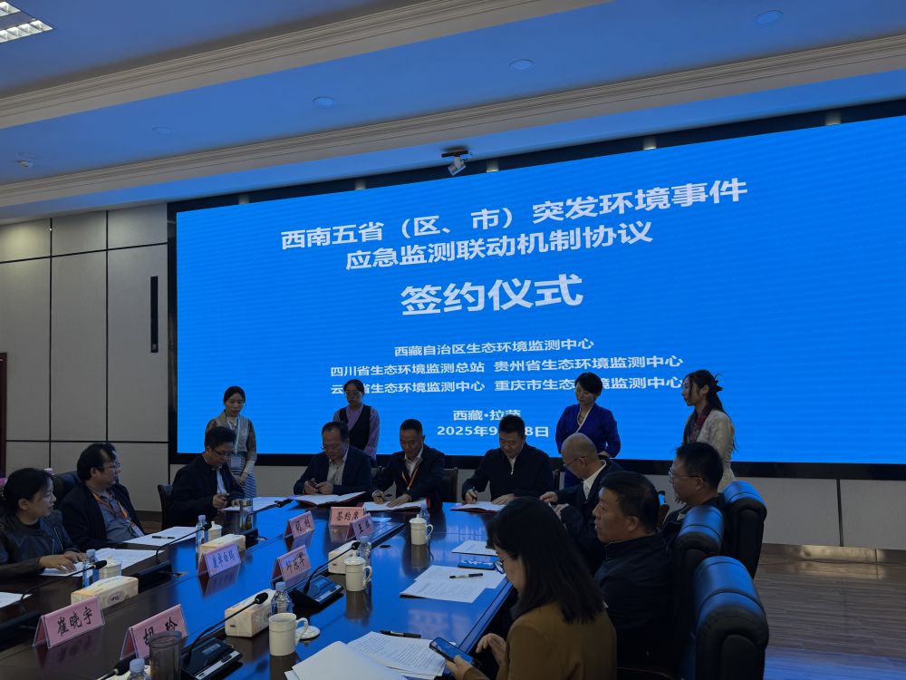 開幕式上,裁判員代表與參賽選手代表分別作了表態(tài)發(fā)言。隨后,會議組織簽訂了《西南五?。▍^(qū)、市)突發(fā)環(huán)境事件應急監(jiān)測聯動機制協(xié)議》。西藏自治區(qū)生態(tài)環(huán)境監(jiān)測中心與重慶市、貴州省、四川省、云南省生態(tài)環(huán)境監(jiān)測機構的代表共同簽署文件,旨在建立起應對跨區(qū)域環(huán)境風險的協(xié)同協(xié)作機制。