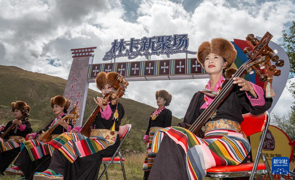 在山南市瓊結(jié)縣強(qiáng)吉村第二屆林卡大會現(xiàn)場,演員們在表演節(jié)目(9月13日攝)。新華社記者 丁增尼達(dá) 攝??