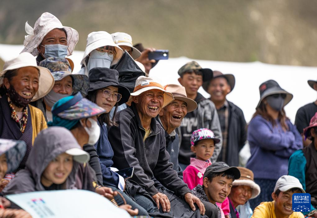 在山南市瓊結(jié)縣強(qiáng)吉村第二屆林卡大會現(xiàn)場,當(dāng)?shù)厝罕娫谟^看演出(9月13日攝)。新華社記者 丁增尼達(dá) 攝