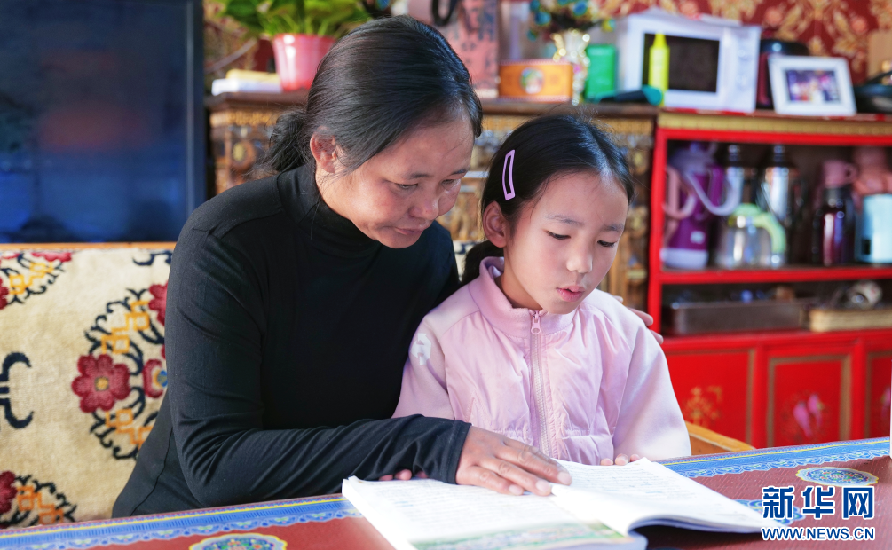 圖為尼吉在陪小女兒讀書(9月28日攝)。新華網 柑丹鴦琦攝