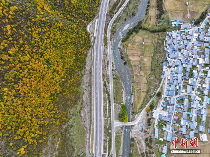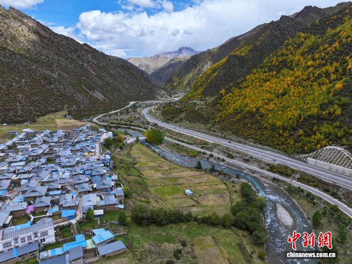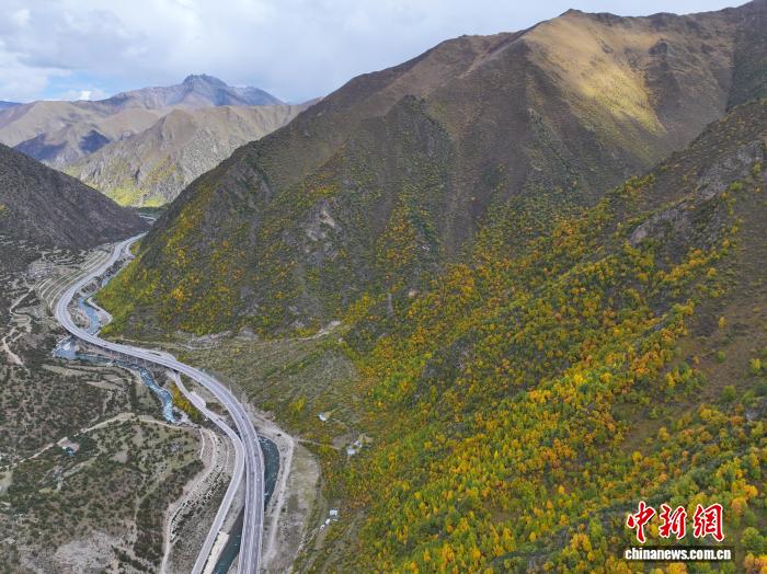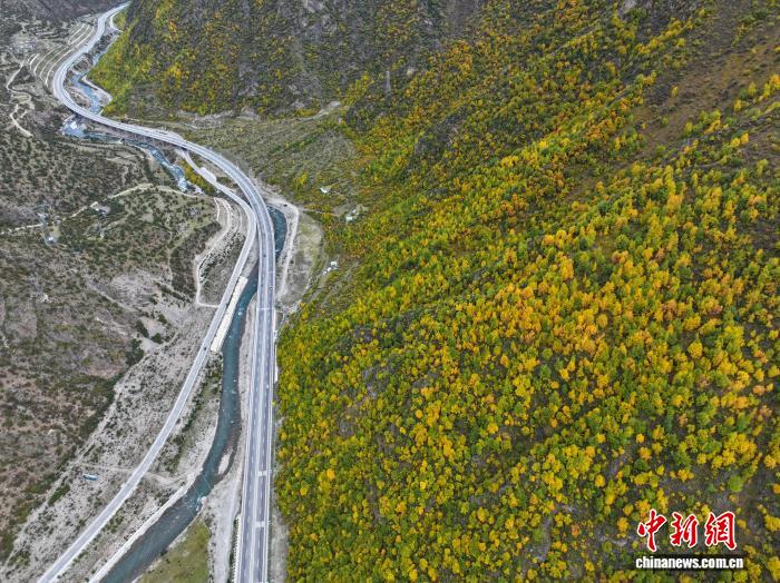 10月1日,西藏自治區(qū)林芝工布江達(dá)縣秋色漸濃,拉薩至林芝的高等級(jí)公路沿線成“移動(dòng)畫(huà)廊”。中新社記者 貢嘎來(lái)松 攝