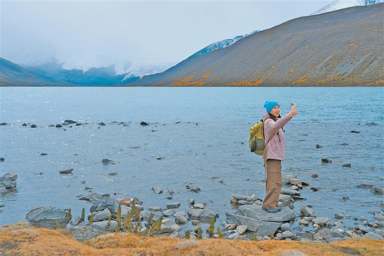 圖為游客在薩普景區(qū)自拍留念。記者 萬靖 攝