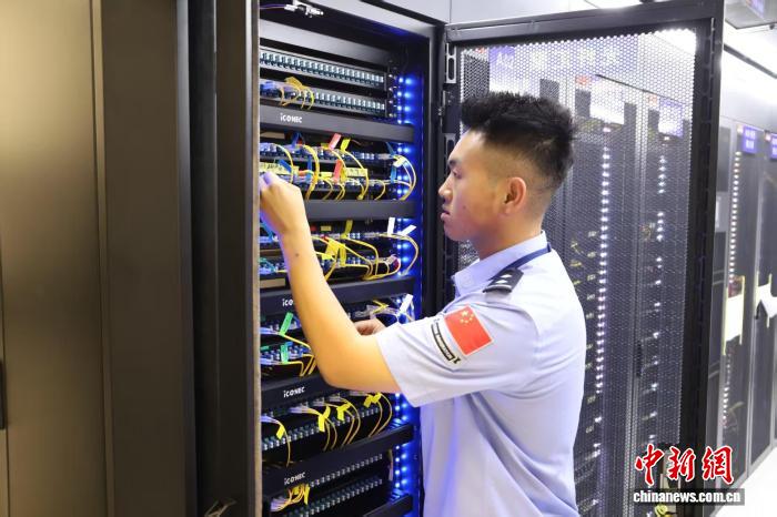 資料圖:蘭州邊檢站民警巡檢通信網(wǎng)絡及設備。曹文義 攝