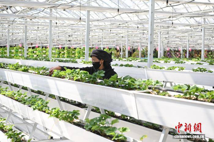 圖為當(dāng)?shù)毓と嗽谀窆たh現(xiàn)代化農(nóng)業(yè)示范園里工作。中新社記者 貢嘎來(lái)松 攝