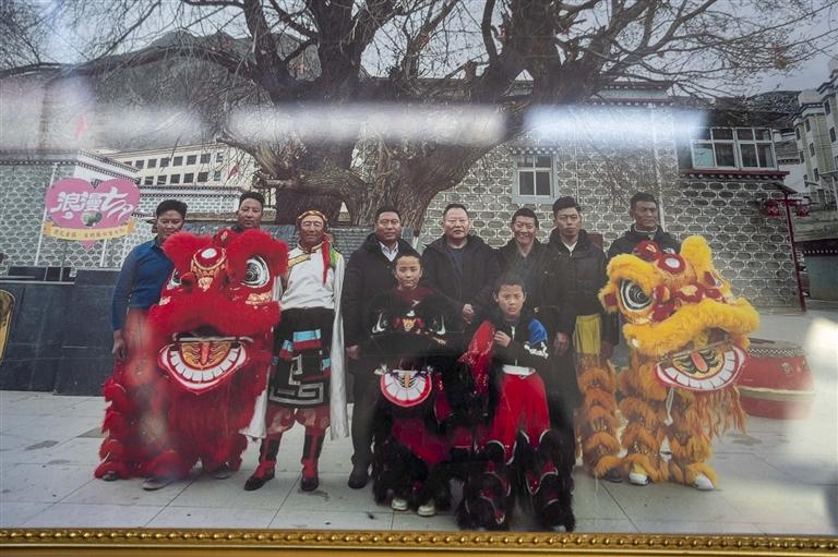 與米珠不同的是,鄧巴阿尼的兒子洛松江村起初并不愿意學習這門技藝?!靶r候我喜歡開車,想當一名司機,是爸爸勸我,‘舞獅是咱們家的根,要是沒人傳,就斷了。’”洛松江村說,剛開始學舞獅時,他也有過抵觸,“每次想要放棄時,爸爸都會把爺爺留下的獅頭拿給我看,說‘這是你爺爺傳下來的,你不想讓它在你手里沒了吧?’”憑著這份叮囑,洛松江村也如米珠一樣堅持了下來。目前,他接觸獅子舞已有20余年了,對于獅子舞同樣有著難以割舍的情懷。