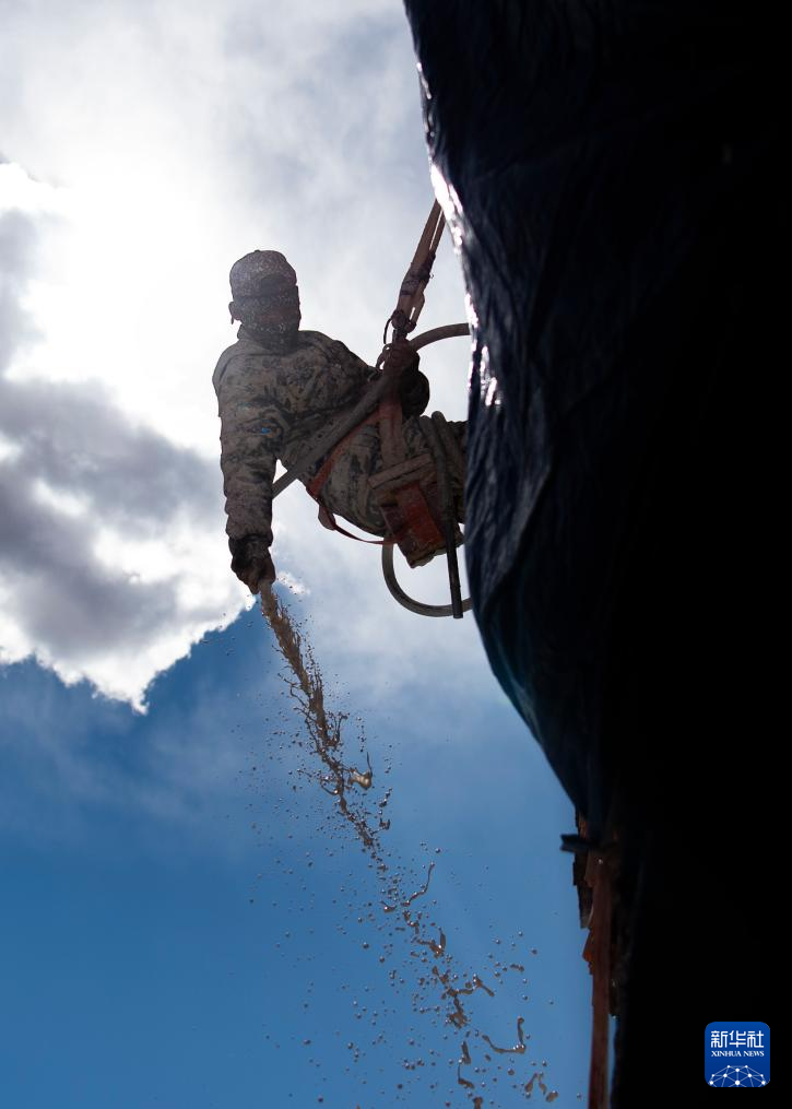 工作人員在噴灑涂料(10月24日攝)。新華社發(fā)(旦增努布攝)