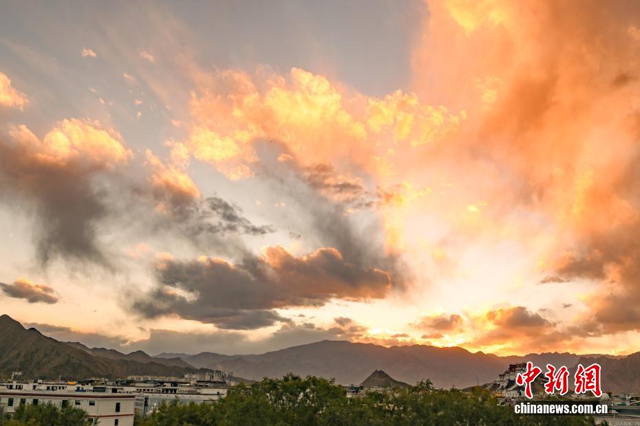 10月23日,西藏拉薩上空出現(xiàn)絢麗晚霞。中新社記者 貢嘎來(lái)松 攝