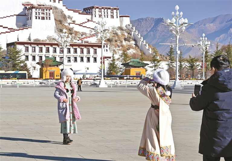 當前正值第八輪“冬游西藏”市場促進活動開展期間,西藏推出包括布達拉宮在內(nèi)的多家景區(qū)免門票優(yōu)惠,吸引游客前來參觀?!?/p>
