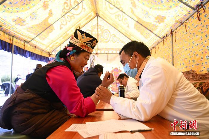 圖為達普天文觀測臺年度觀測活動現(xiàn)場,西藏自治區(qū)藏醫(yī)院的專家為村民免費義診。貢嘎來松 攝