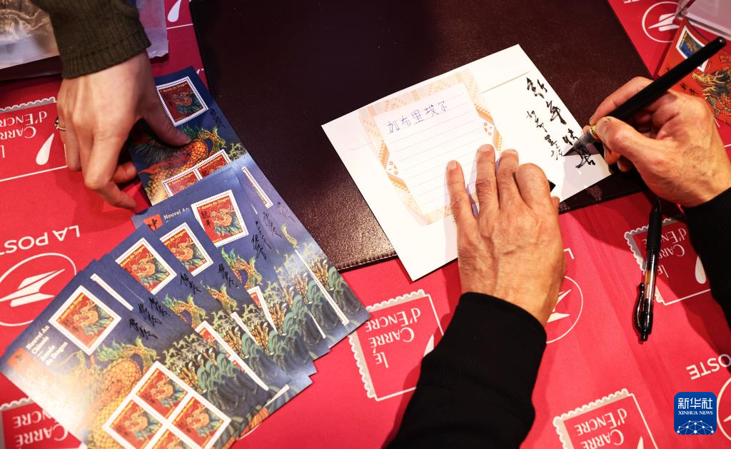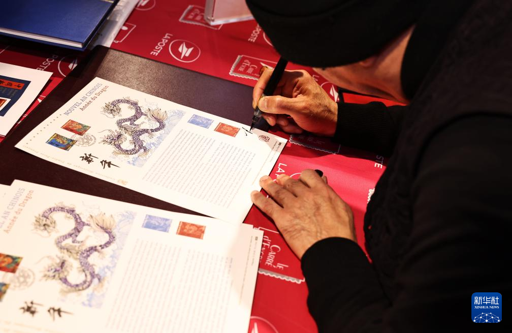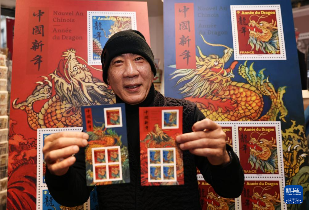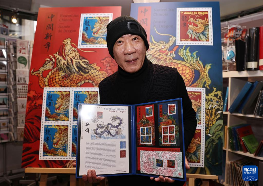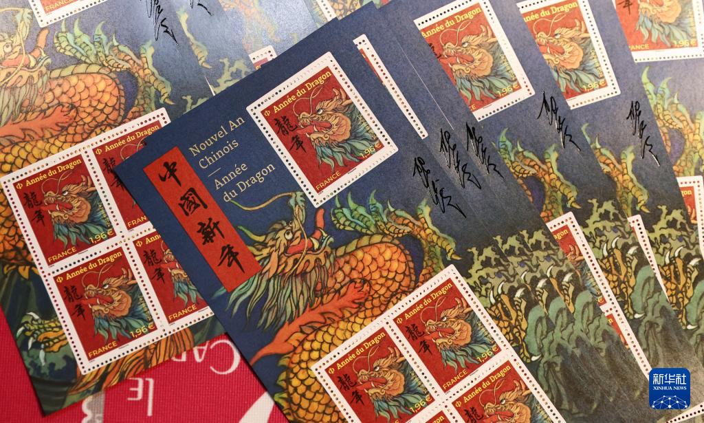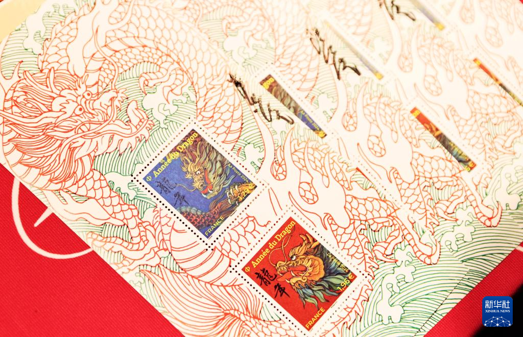 這是1月26日在法國巴黎拍攝的龍年生肖紀念郵票。新華社記者 高靜 攝