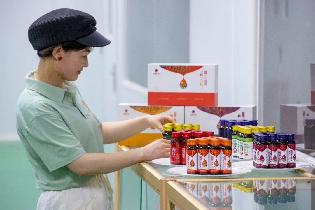 ▲6月20日,在寧夏同心縣河西鎮(zhèn)一家枸杞企業(yè),工作人員展示枸杞深加工產(chǎn)品。近年來,河西鎮(zhèn)依托當(dāng)?shù)厝龡l引黃干渠灌溉網(wǎng)絡(luò),流轉(zhuǎn)土地發(fā)展枸杞種植,通過龍頭企業(yè)帶動的方式發(fā)展枸杞深加工,產(chǎn)品深受國內(nèi)外消費者喜愛。新華社記者 楊植森 攝